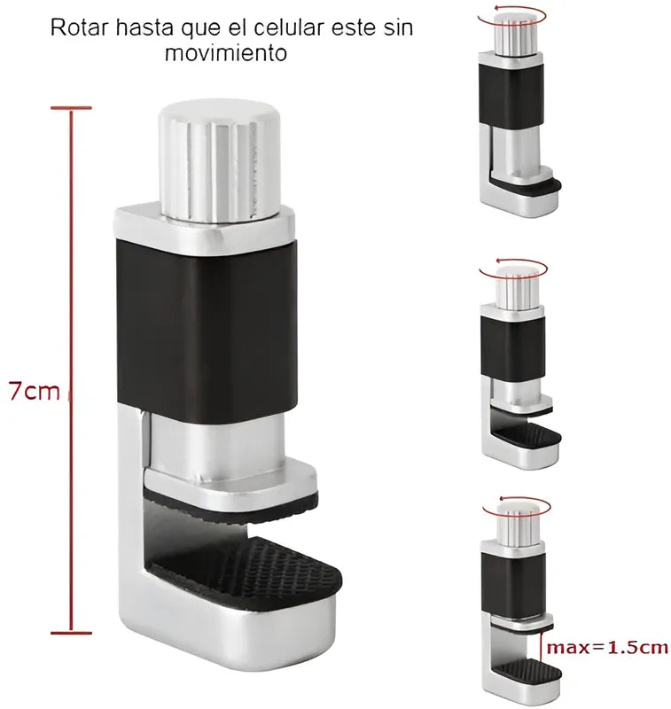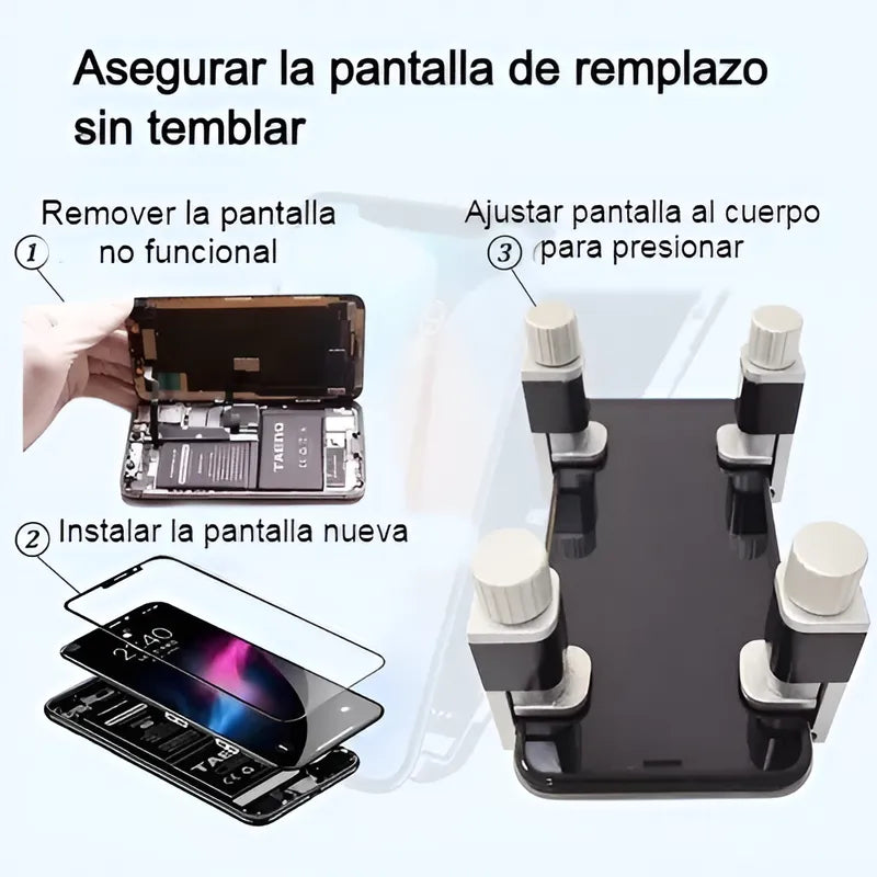 Mantiene sujetos los celulares o tabletas que se encuentran en proceso de reparación para lograr una buena adherencia del display gracias a sus gomas antiderrapantes y sus apertura ajustable.