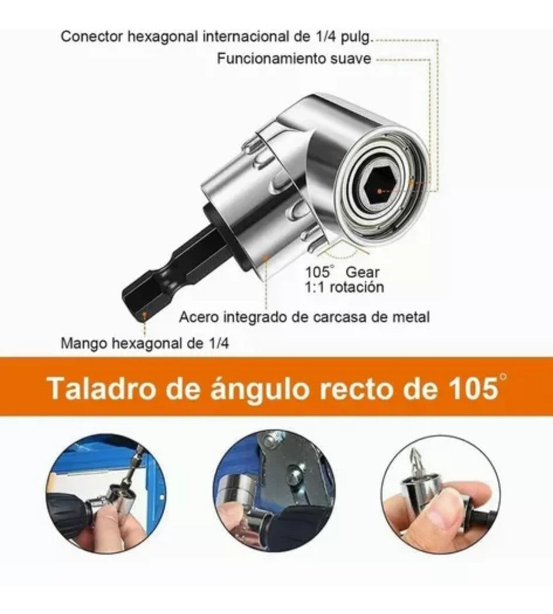 Adaptador Taladro Angulo 105° Broca Extension Flexible Dado