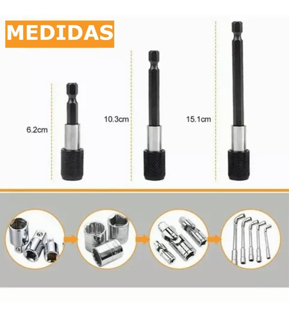 3 adaptadores de taladro (1/4 3/8 1/2 pulgadas).