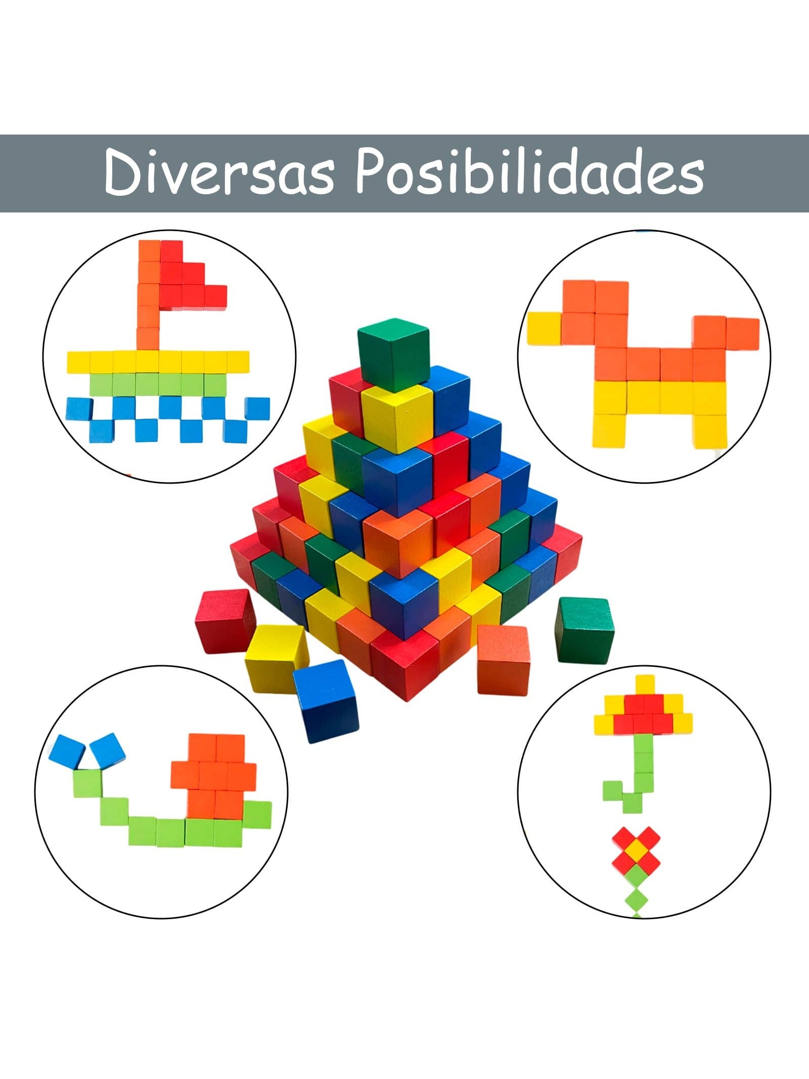 Juguete Cubo de Colores Madera 2.5cm Apilable Didáctico Colores Educativo Aprendizaje y Desarrollo Escolar Montessori | 30pzs