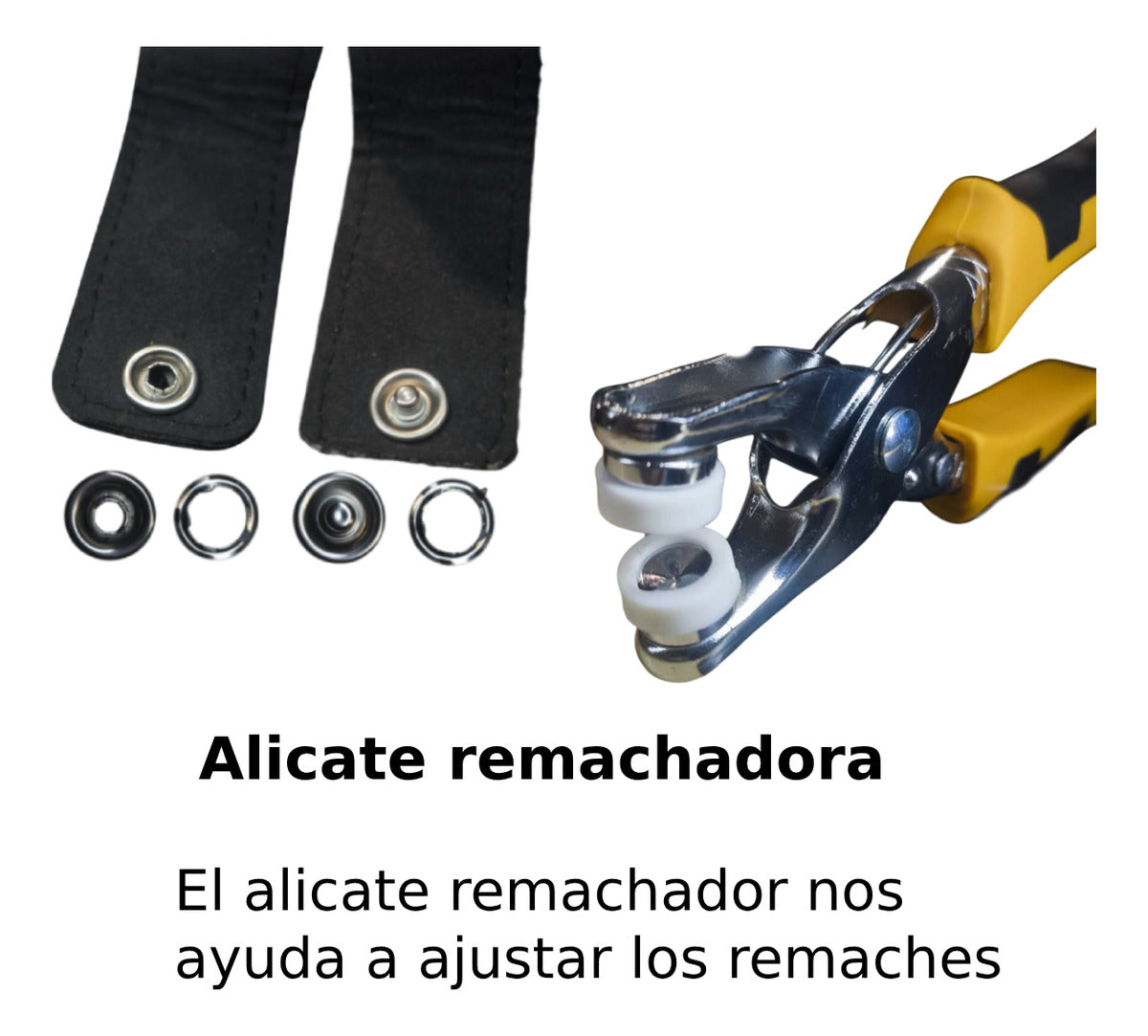 - Coloca y presiona sin tanto esfuerzo. No es necesario coser para colocar tus remaches. Aplica fácilmente los botones a su chamarras, pantalones o camisas con su pinza sacabocado remachadora.