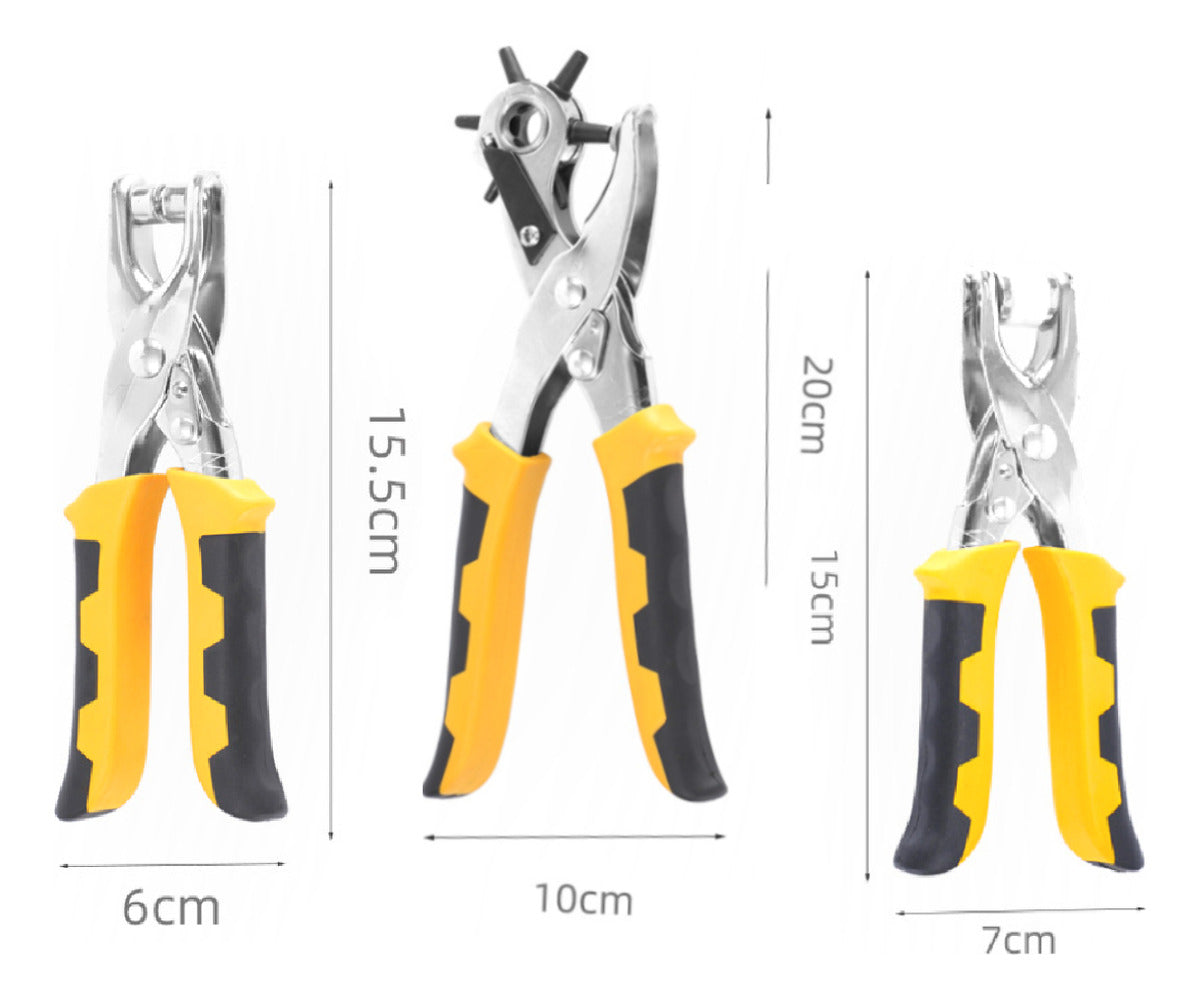 Con estas pinzas anilladora y sacabocado podrás realizar cualquier tipo de trabajo manual para piel, tela, plástico, cinturones, chamarras con materiales suaves y más.