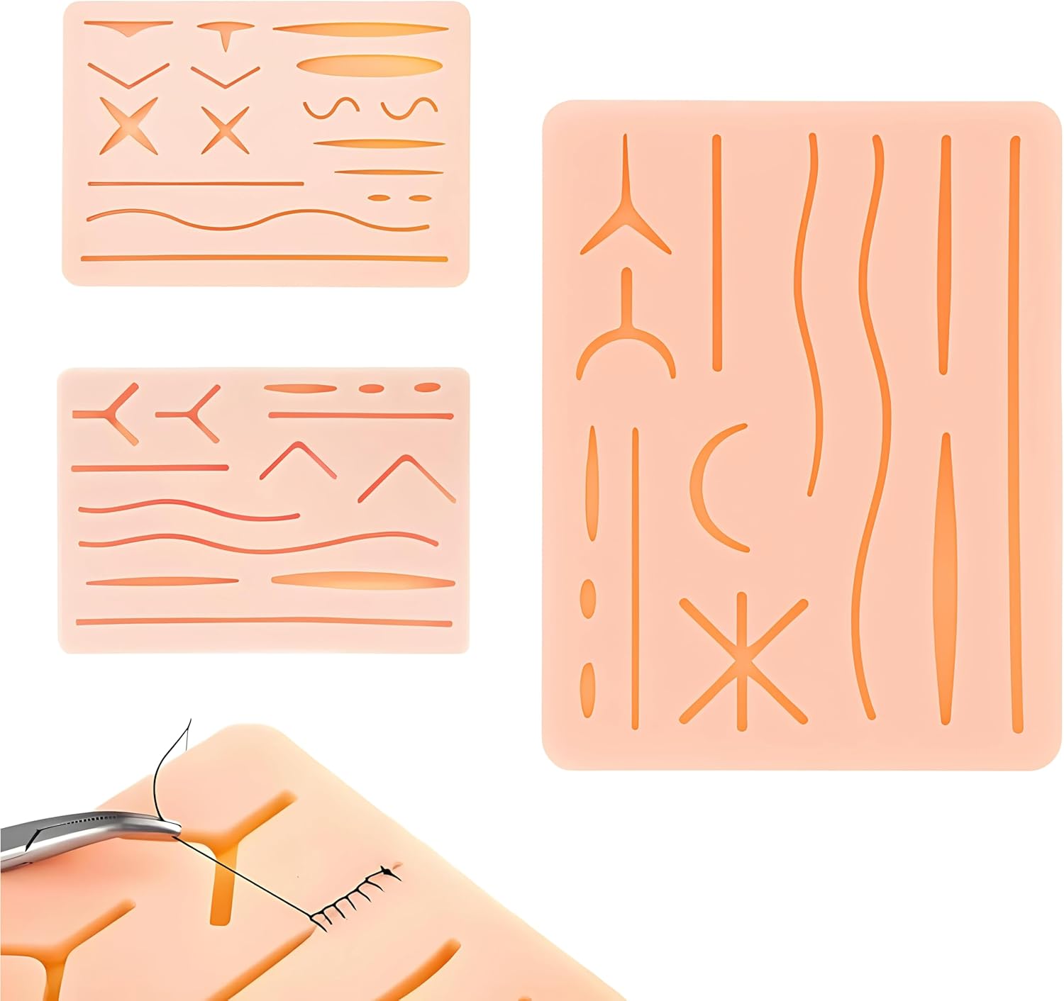 Kit De Práctica De Sutura 3 Pads De Silicona (45 Incisiones) – Ideal Para Estudiantes | Piel Falsa 3pzs