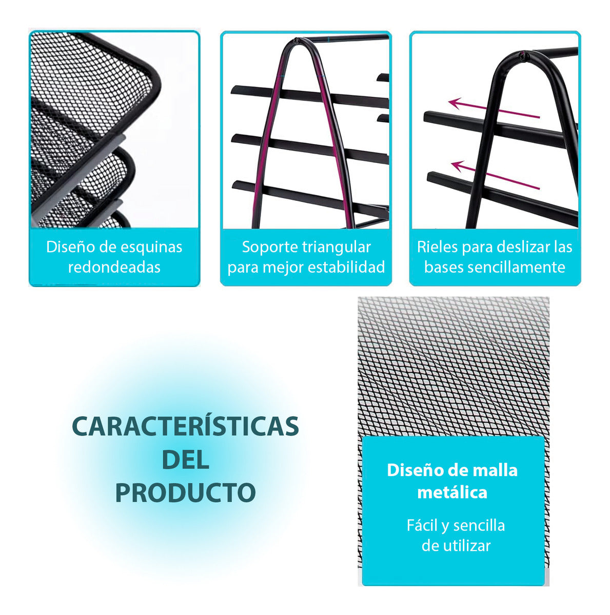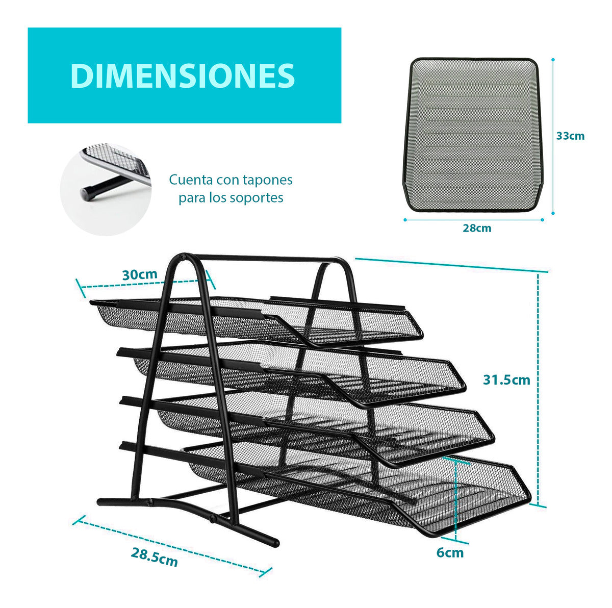 Organizador Escritorio Documentos Malla Metálica 4 Niveles
