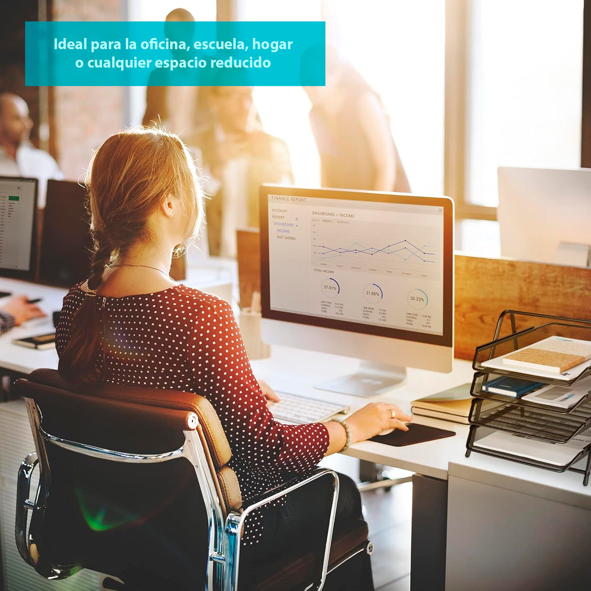 - Ahorro de Espacio: Su estructura compacta y eficiente te permite mantener tu escritorio ordenado sin ocupar demasiado espacio.