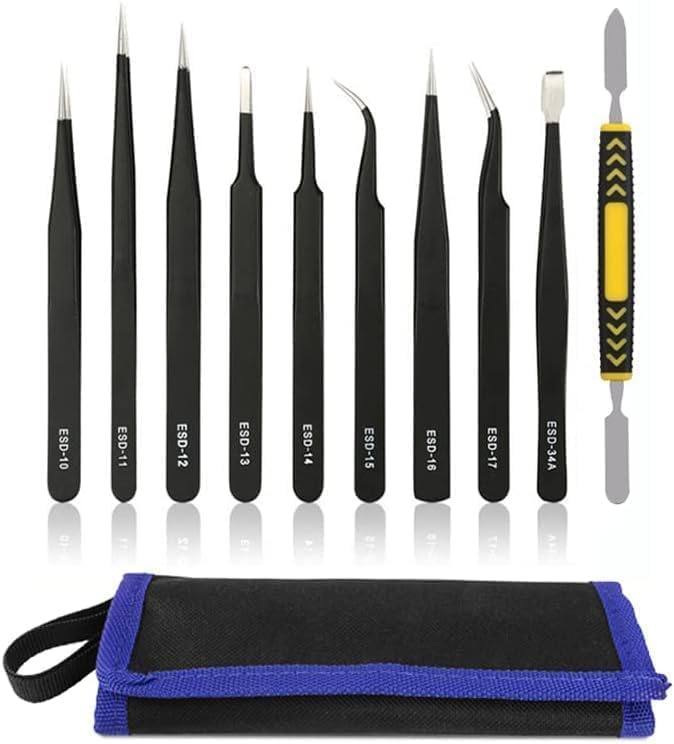 Pinzas de Precisión Antiestáticas Acero Inoxidable Herramienta Multiuso | 10 Piezas